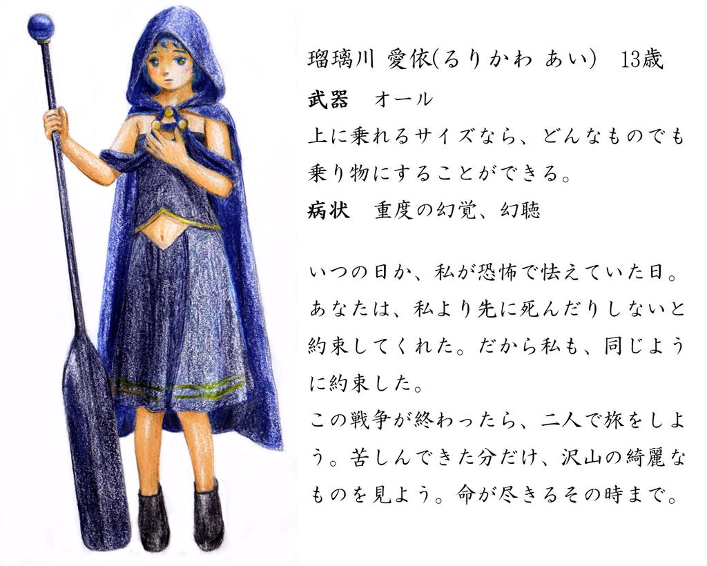 フリーゲームを制作されたり、絵を描いていらっしゃる方。企画に参加してツイッターのアカウントの雰囲気をもとに魔法少女していただきました。スタジオ山奥の楽曲にもぴったりな気がして、看板息子に継いで看板娘になってもらいたいくらいお気に入りの子です。新作ゲームのキャラになる予定とのこと。企画はこちら